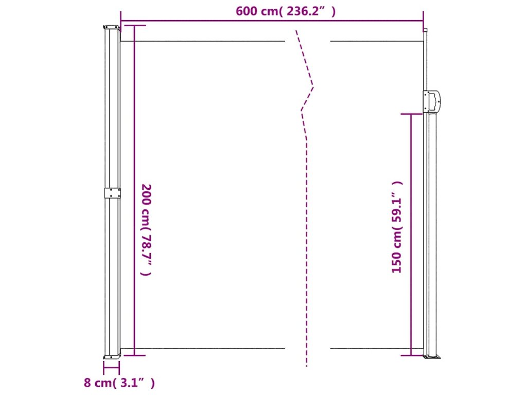 Zatahovací boční markýza hnědá 200 x 600 cm 4004554