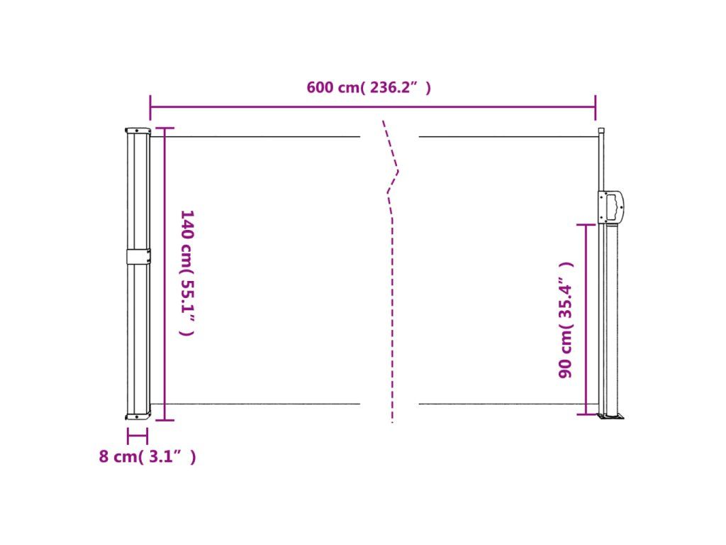 - Široké použití: Tuto univerzální boční markýzu lze použít v různých prostředích, jak venku, jako například na dvoře, terase, zahradě, verandě, balkoně, tak i v interiéru, jako například v kanceláři, ordinaci, ateliéru, šatně či k vytvoření dalšího prostoru podle potřeby.