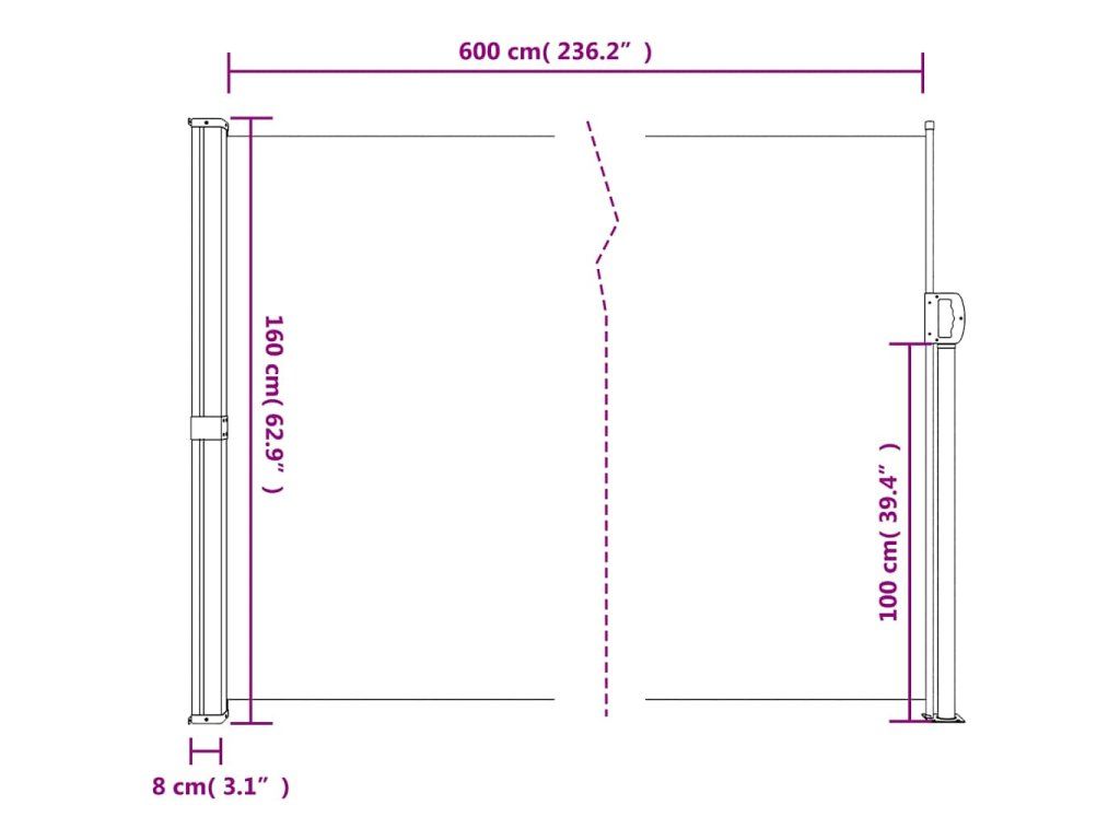 Zatahovací boční markýza tmavě zelená 160 x 600 cm 4004530