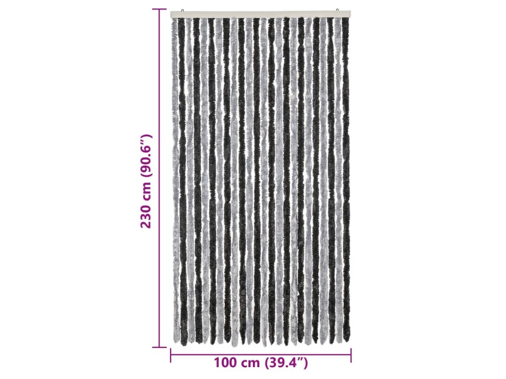 Závěs proti hmyzu šedý a černý 100 x 230 cm žinylka 377331