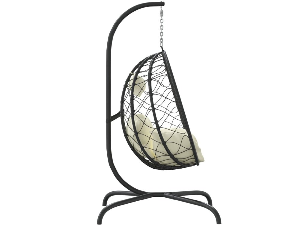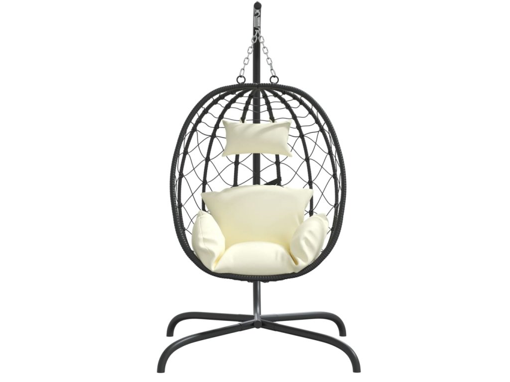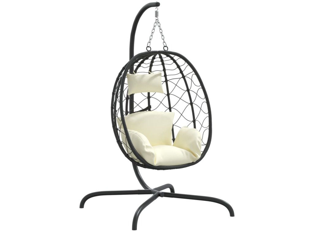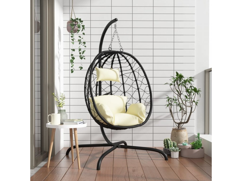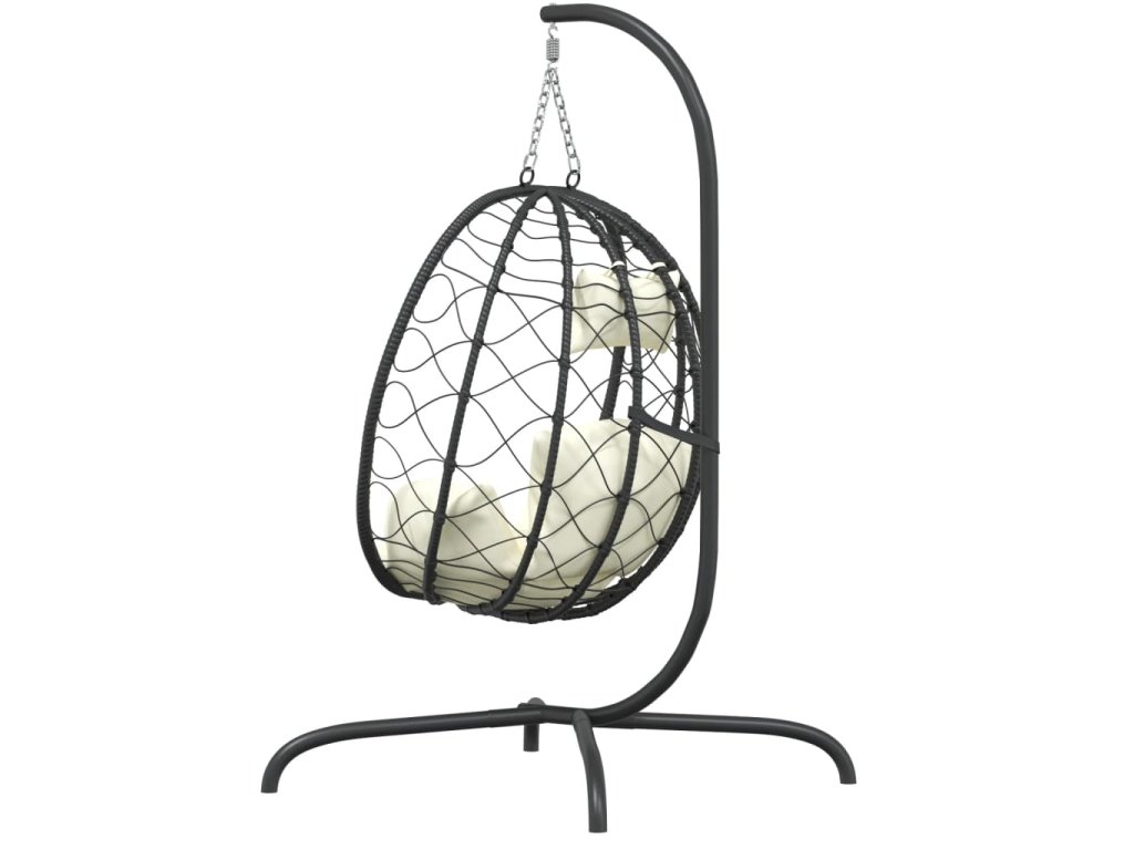 Závěsné křeslo ve tvaru vejce s polštářem krémově bílé polyratan a ocel 360046