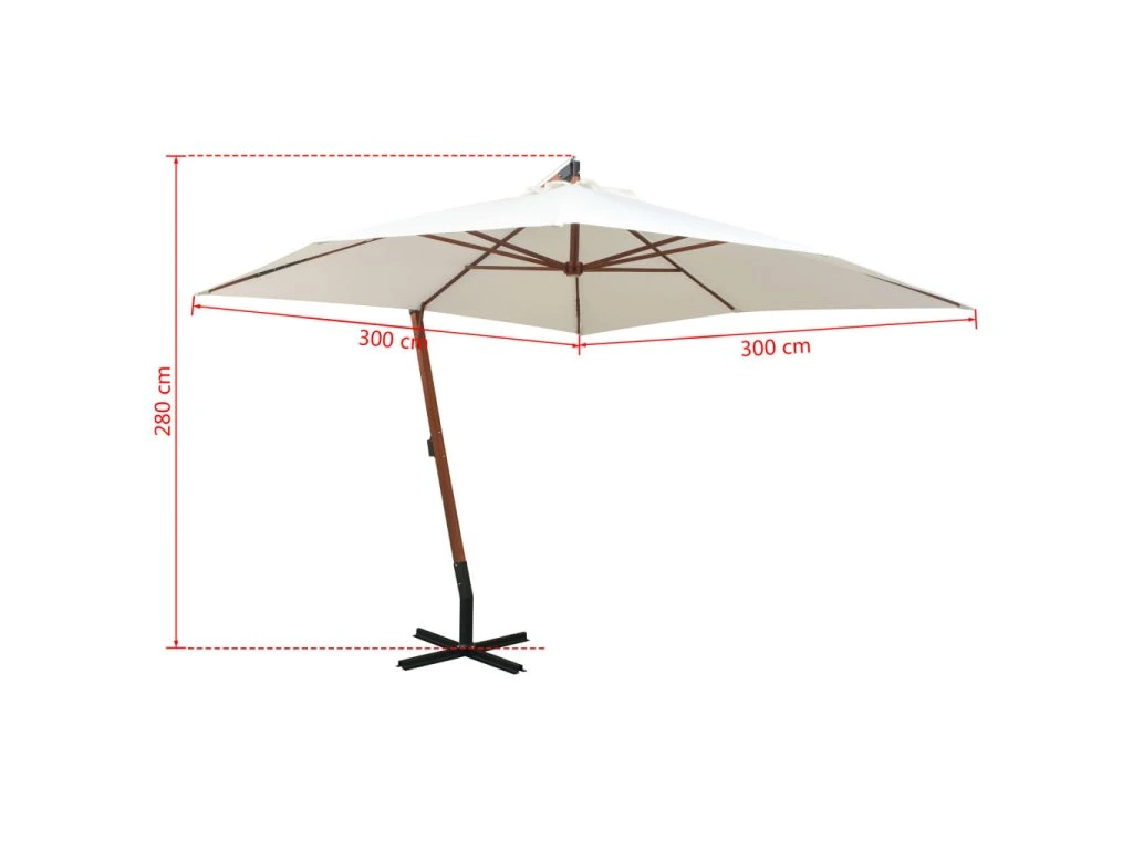 Závěsný slunečník 300 x 300 cm dřevěná tyč bílý 42968