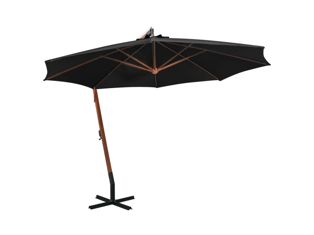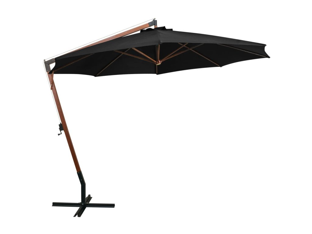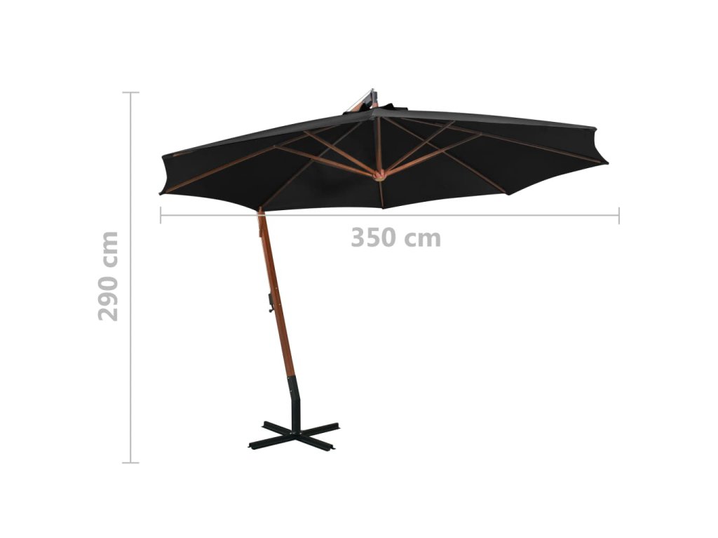 Závěsný zahradní slunečník s tyčí černý 3,5 x 2,9 m masiv jedle 313772