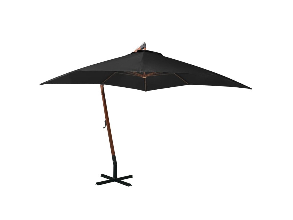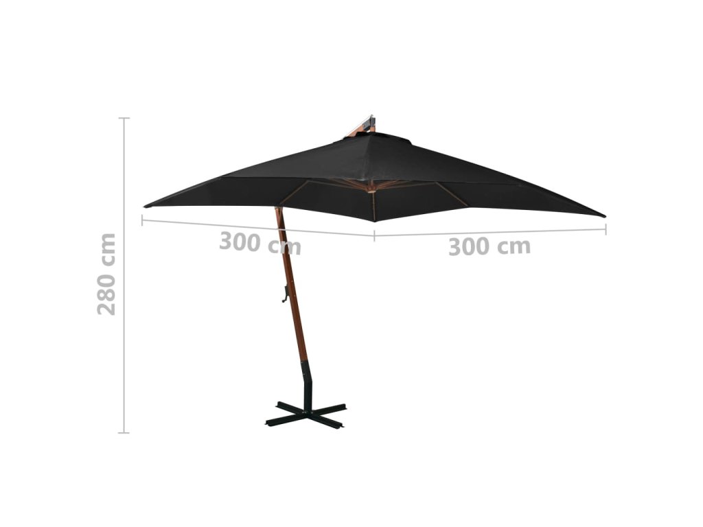 Závěsný zahradní slunečník s tyčí černý 3 x 3 m masivní jedle 313778