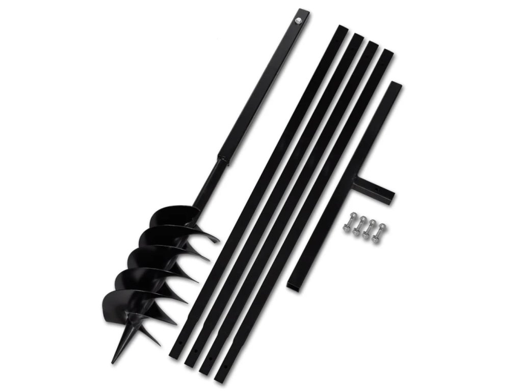 - Balení obsahuje zemní vrták, rukojeť, 4 ks prodlužovacích nástavců a šrouby