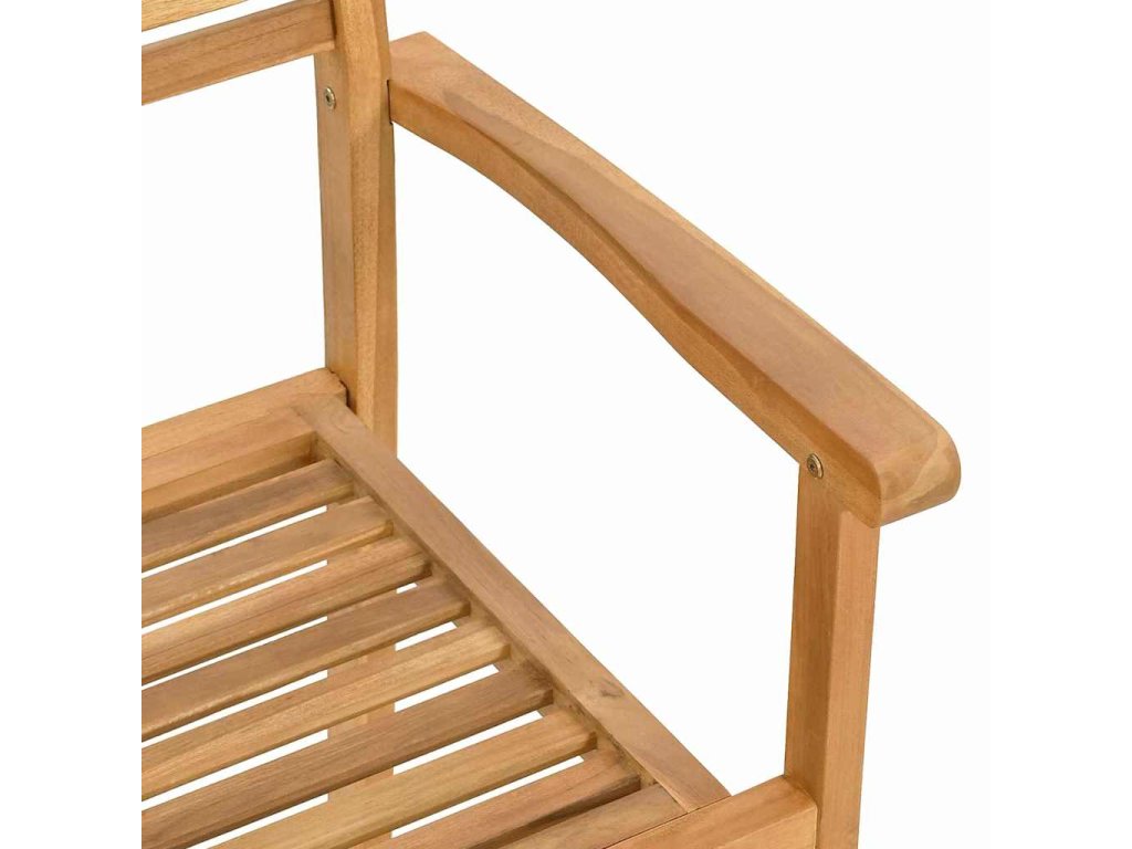 - Masivní teaková konstrukce Židle je vyrobená z teakového dřeva, které je odolné vůči povětrnostním vlivům a zajišťuje dlouhou životnost.