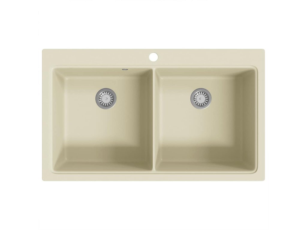 Žulový kuchyňský dřez dvojitý béžový 144851
