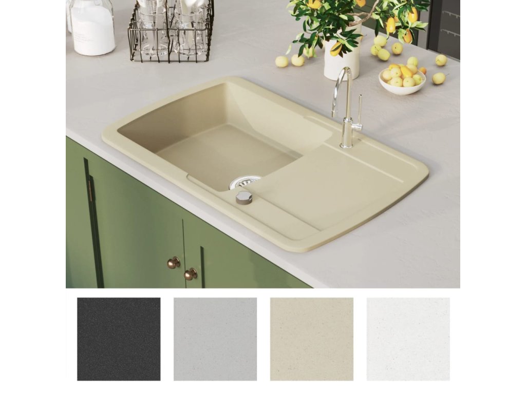 Dřez je zhotoven z vysoce kvalitní žuly, výborně tedy odolává teplu, poškrábání a nárazům a snadno se čistí. Navíc je oboustranný, takže ho můžete namontovat jak na pravou, tak na levou stranu. Součástí balení je i sítko na odpad pro jednodušší odstraňování nečistot.