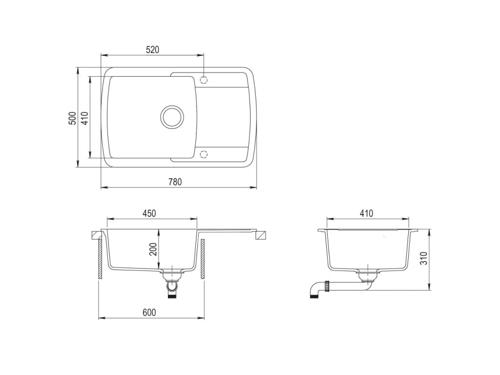 - Rozměry umyvadla: 450 x 410 x 200 mm (D x Š x H)