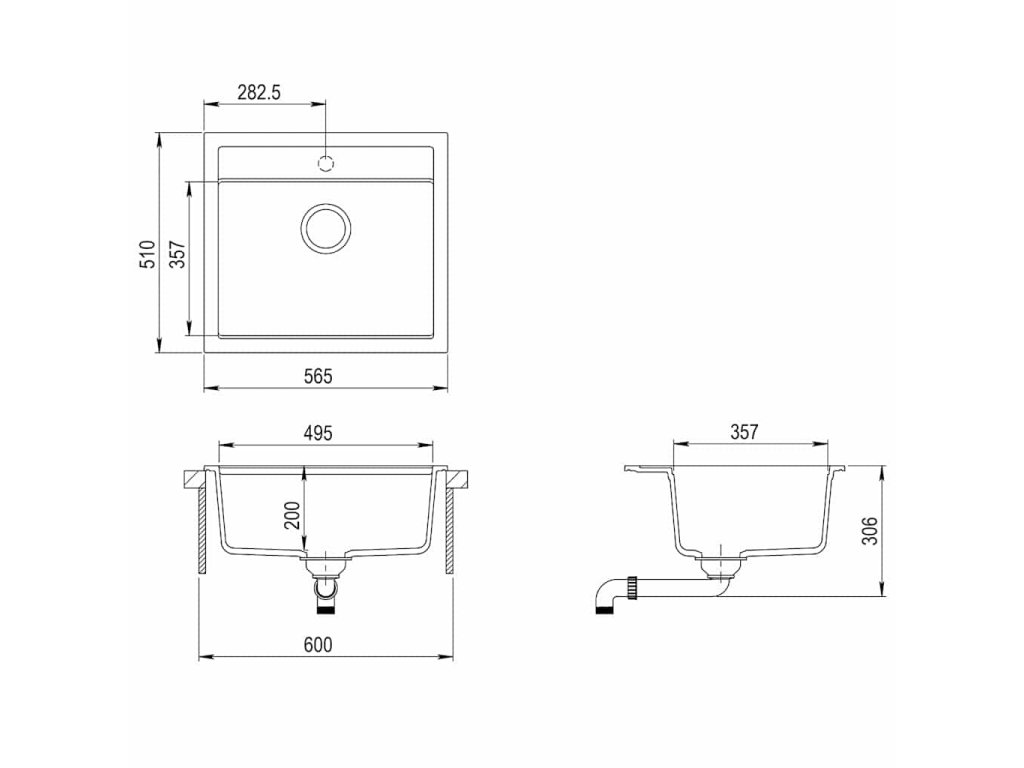 • Rozměry umyvadla: 495 x 357 x 200 mm (D x Š x H) mm