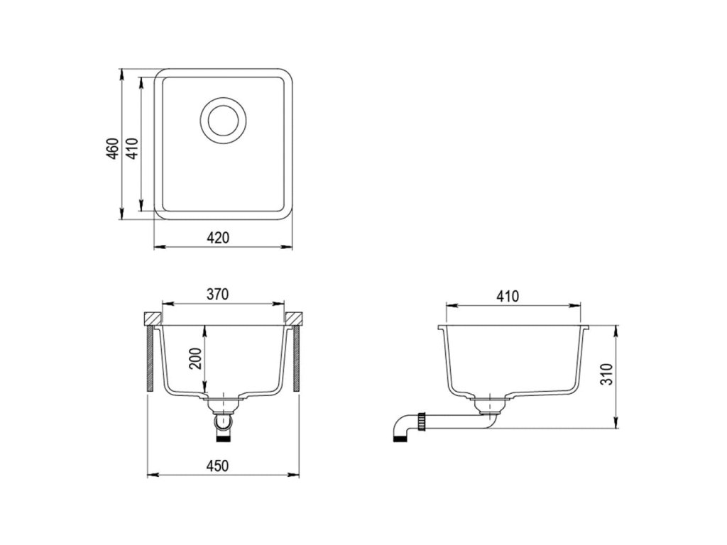 - Rozměry umyvadla: 370 x 410 x 200 mm (D x Š x H)