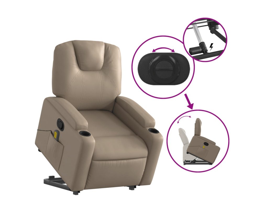 Zvedací masážní polohovací křeslo cappuccino umělá kůže 3204443