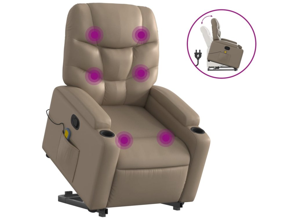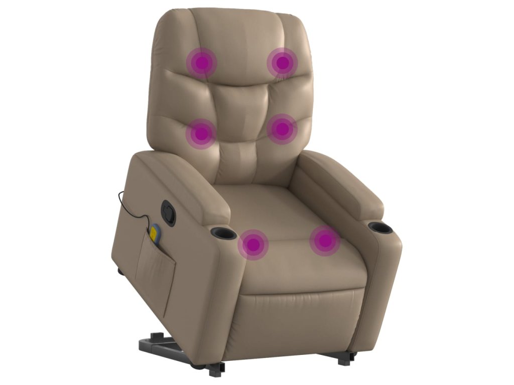 Zvedací masážní polohovací křeslo cappuccino umělá kůže 3204671