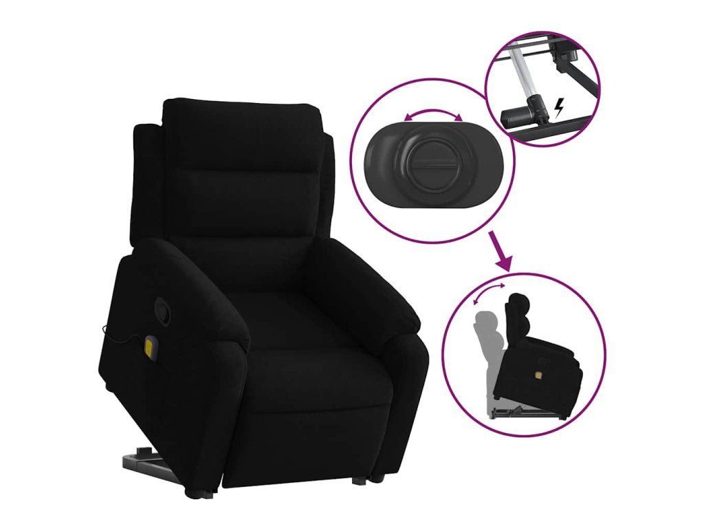 Zvedací masážní polohovací křeslo černé samet 3205109