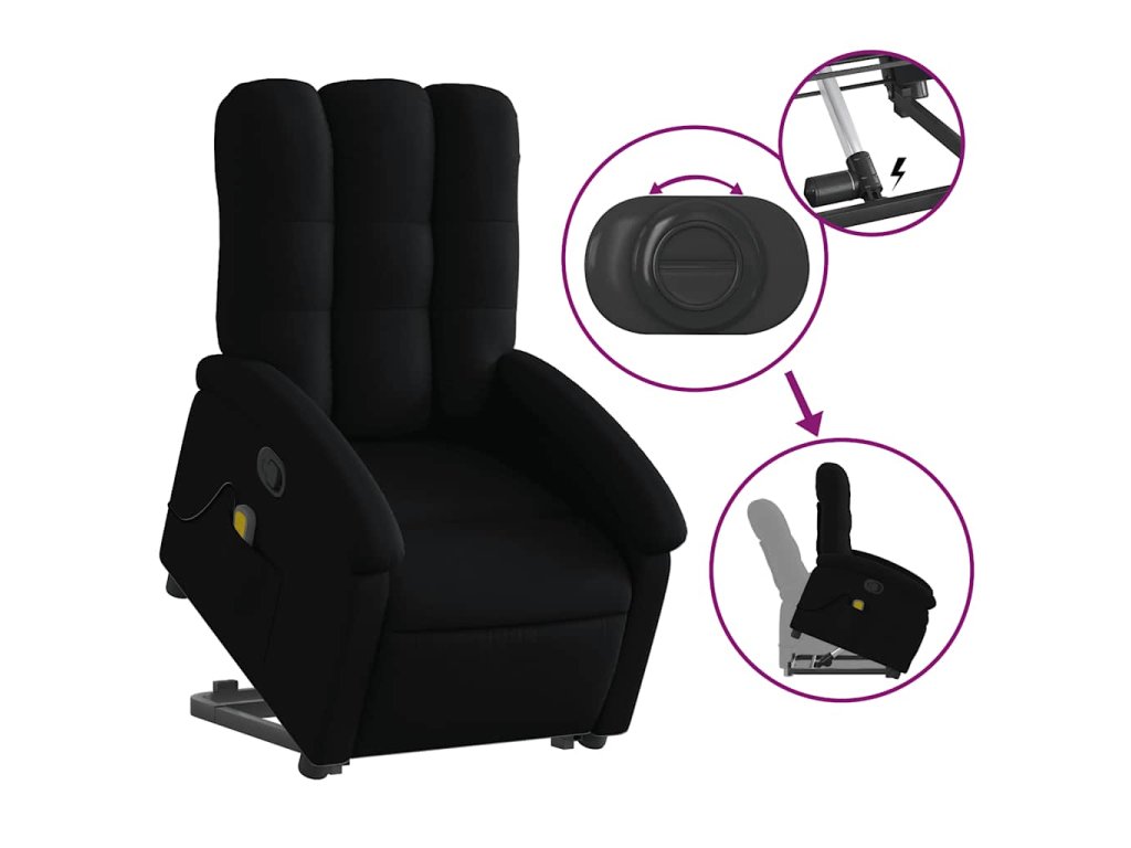 Zvedací masážní polohovací křeslo černé textil 3204106