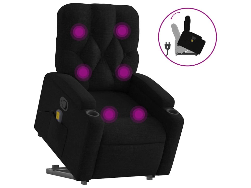 Zvedací masážní polohovací křeslo černé textil 3204724