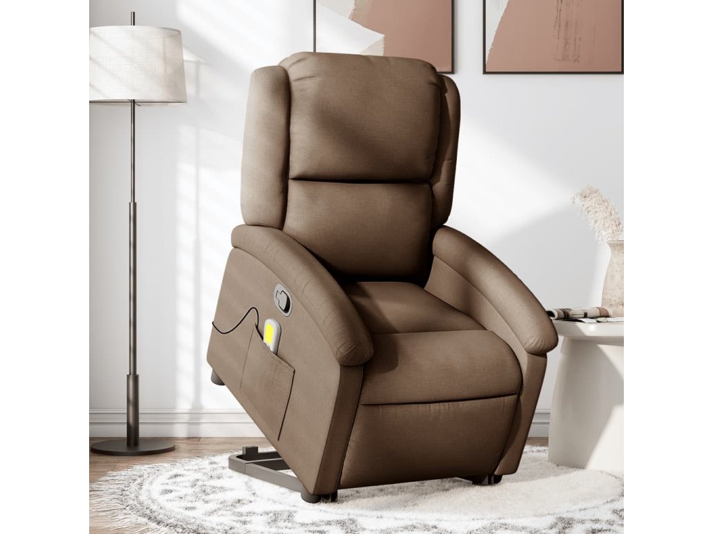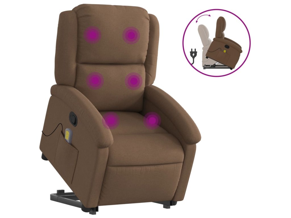 Zvedací masážní polohovací křeslo hnědé textil 3204180
