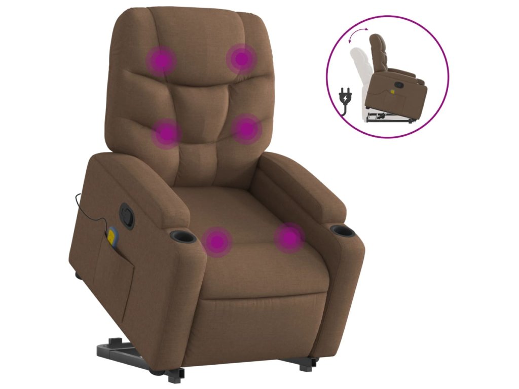 Zvedací masážní polohovací křeslo hnědé textil 3204612