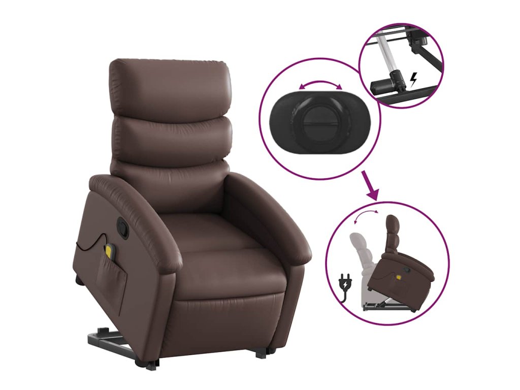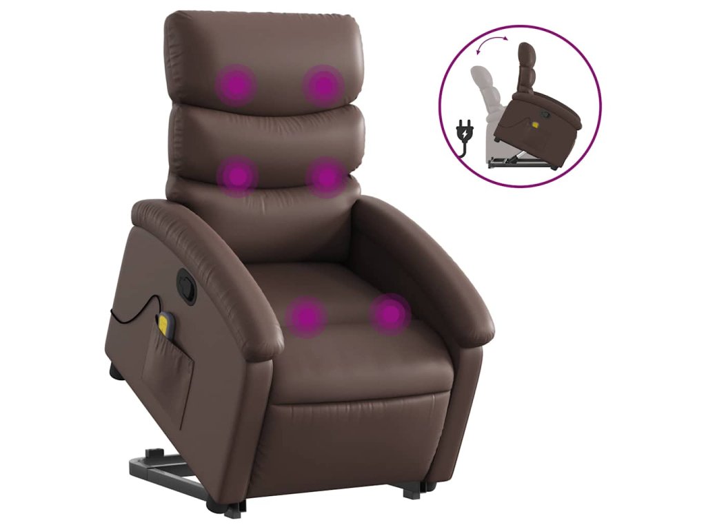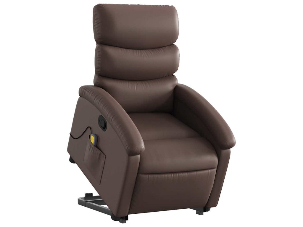 Zvedací masážní polohovací křeslo hnědé umělá kůže 3204049