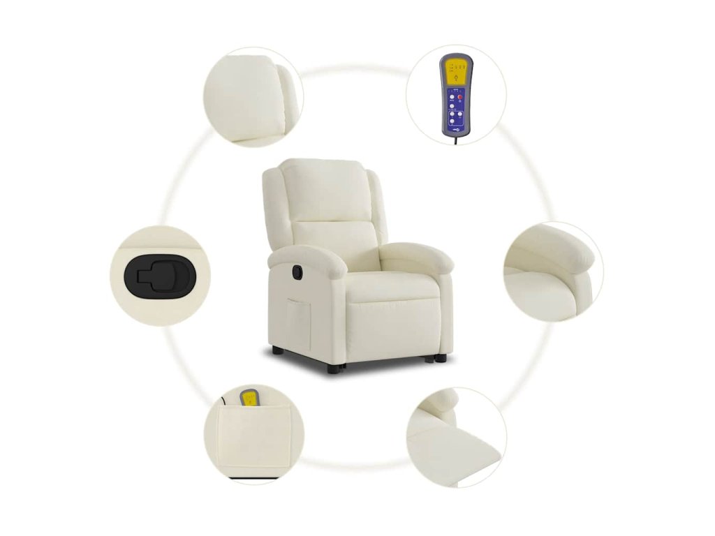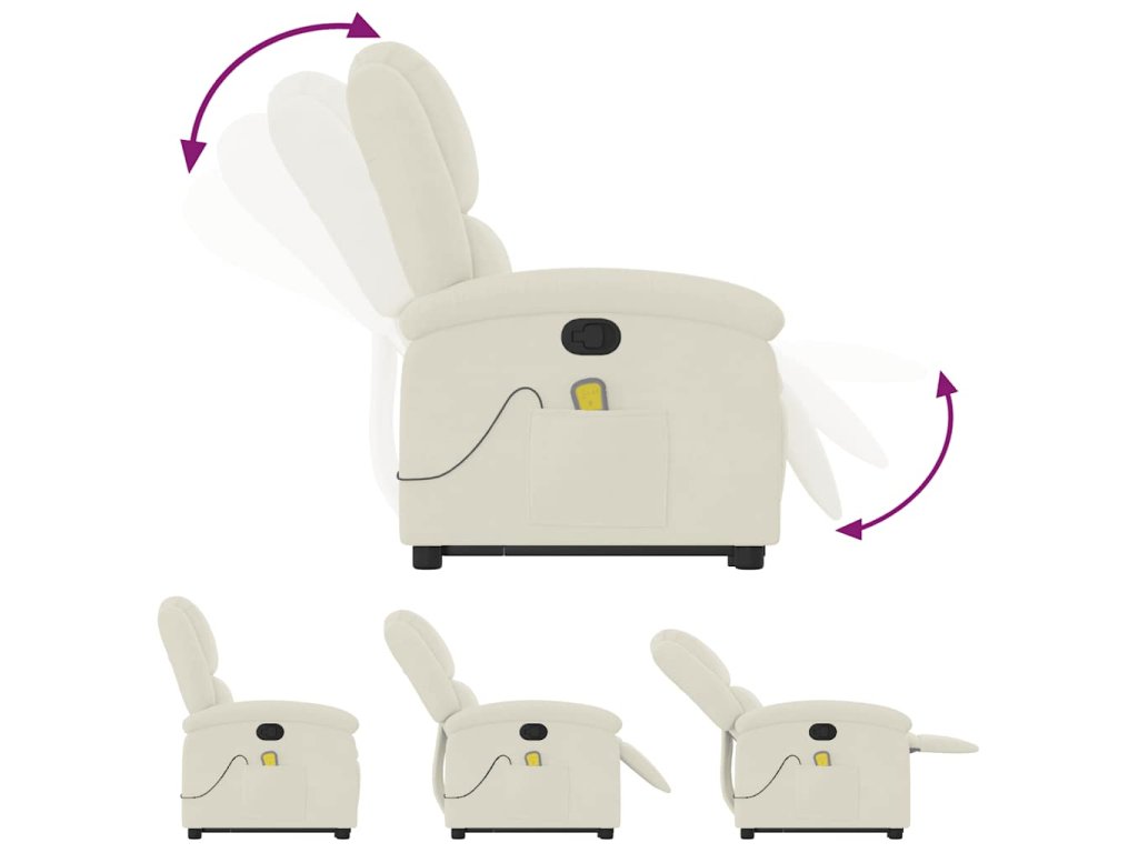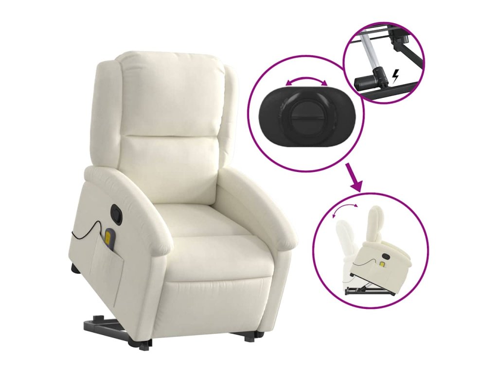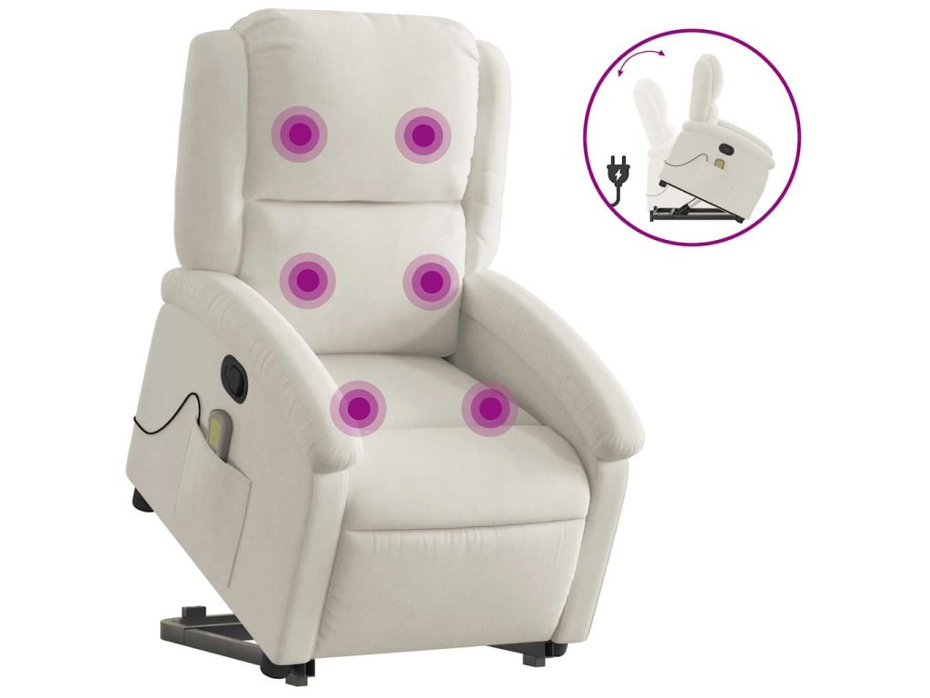 Zvedací masážní polohovací křeslo krémové samet 3204320