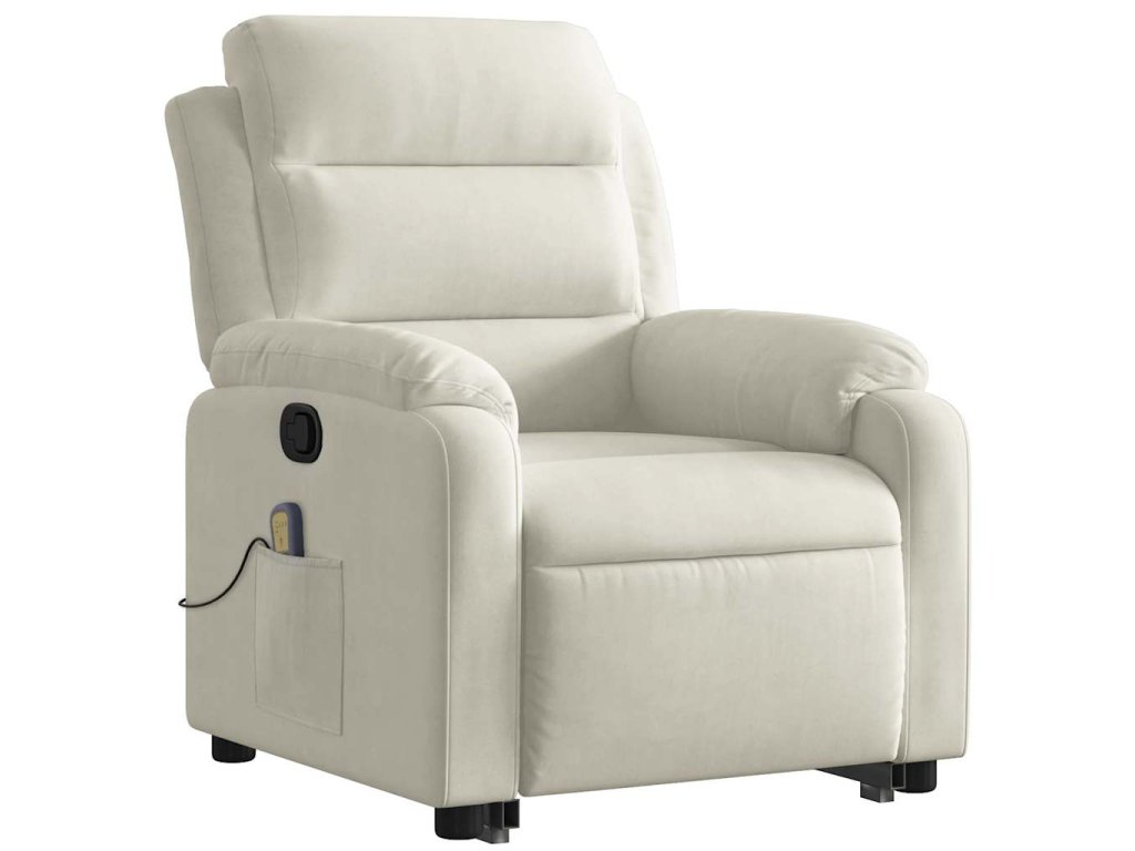 Zvedací masážní polohovací křeslo krémové samet 3205112