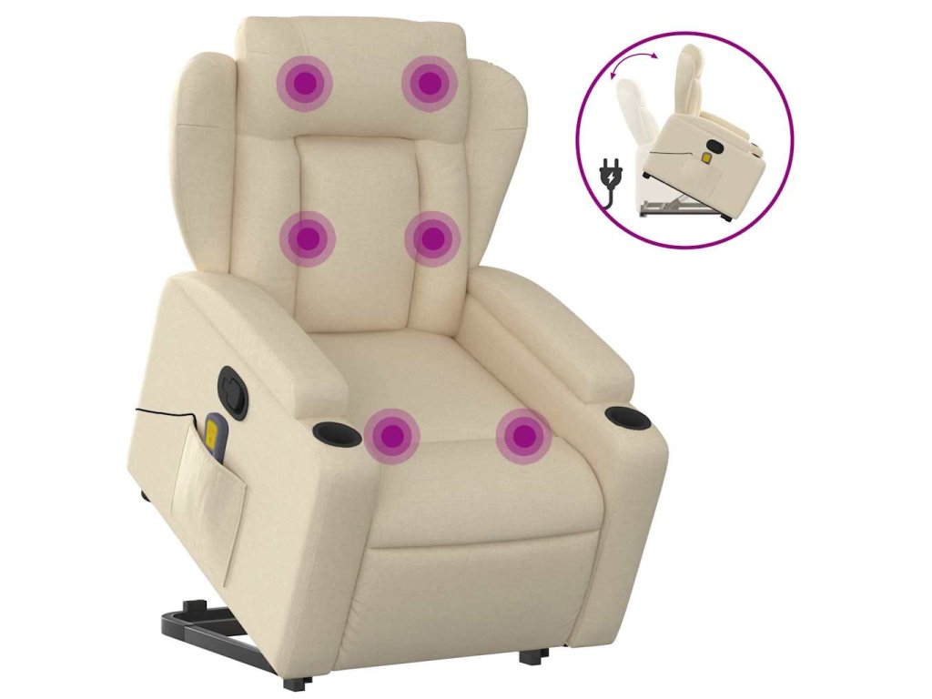 Zvedací masážní polohovací křeslo krémové textil 3204503