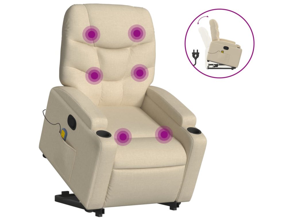 Zvedací masážní polohovací křeslo krémové textil 3204617