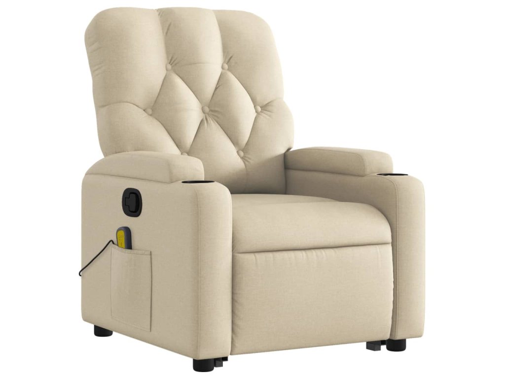 Zvedací masážní polohovací křeslo krémové textil 3204731