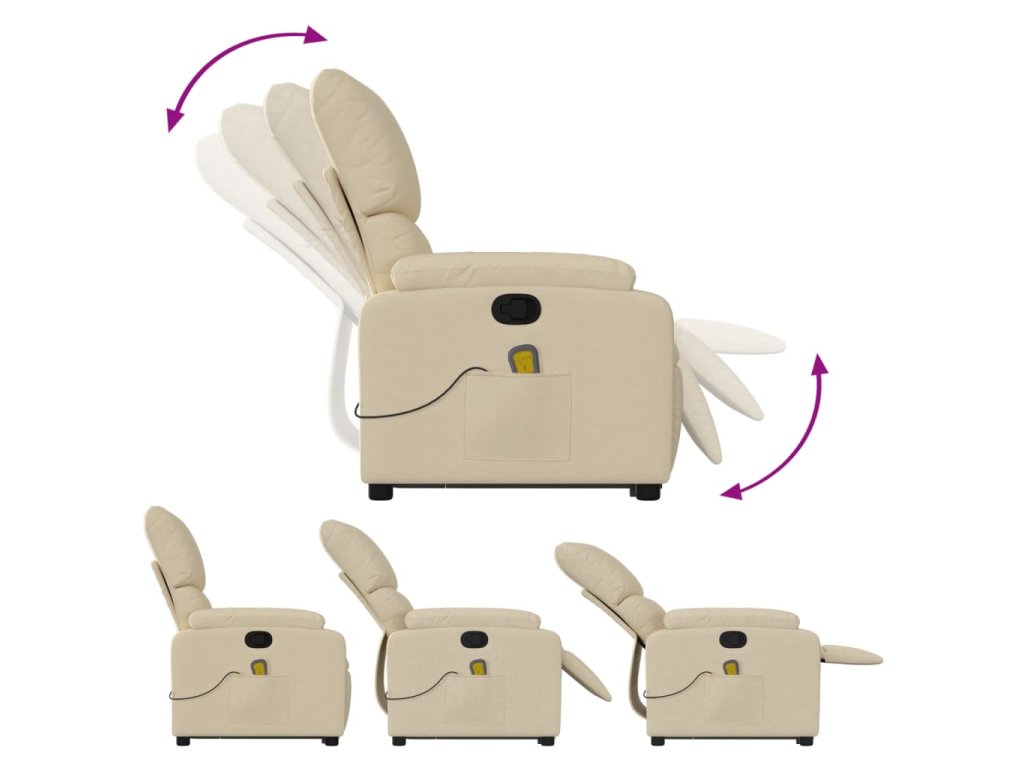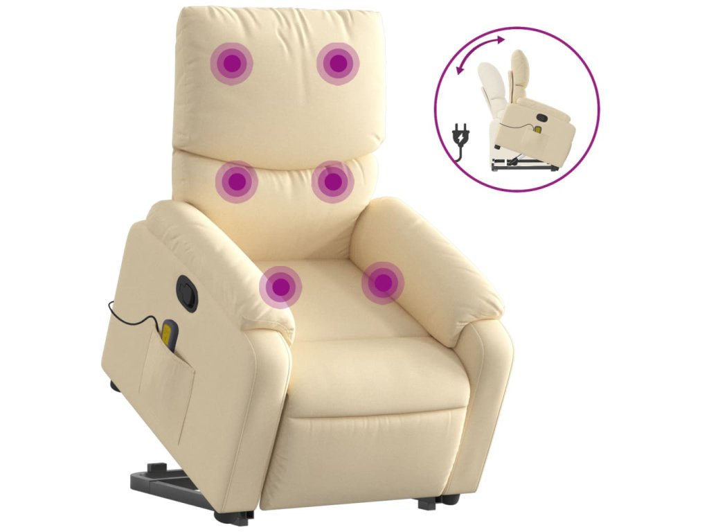 Zvedací masážní polohovací křeslo krémové textil 3204845