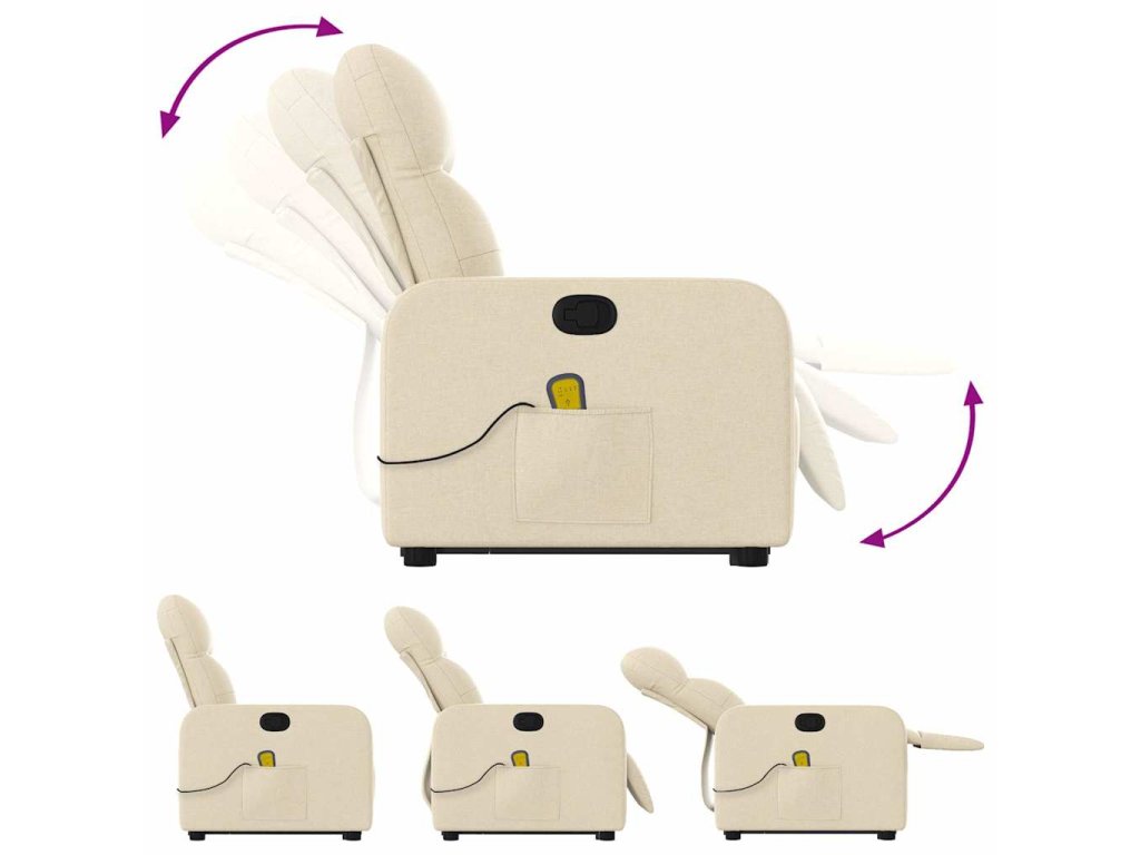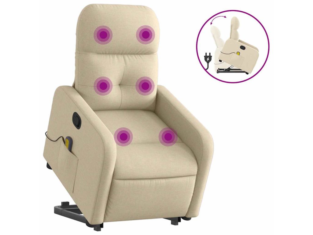 Zvedací masážní polohovací křeslo krémové textil 3206812