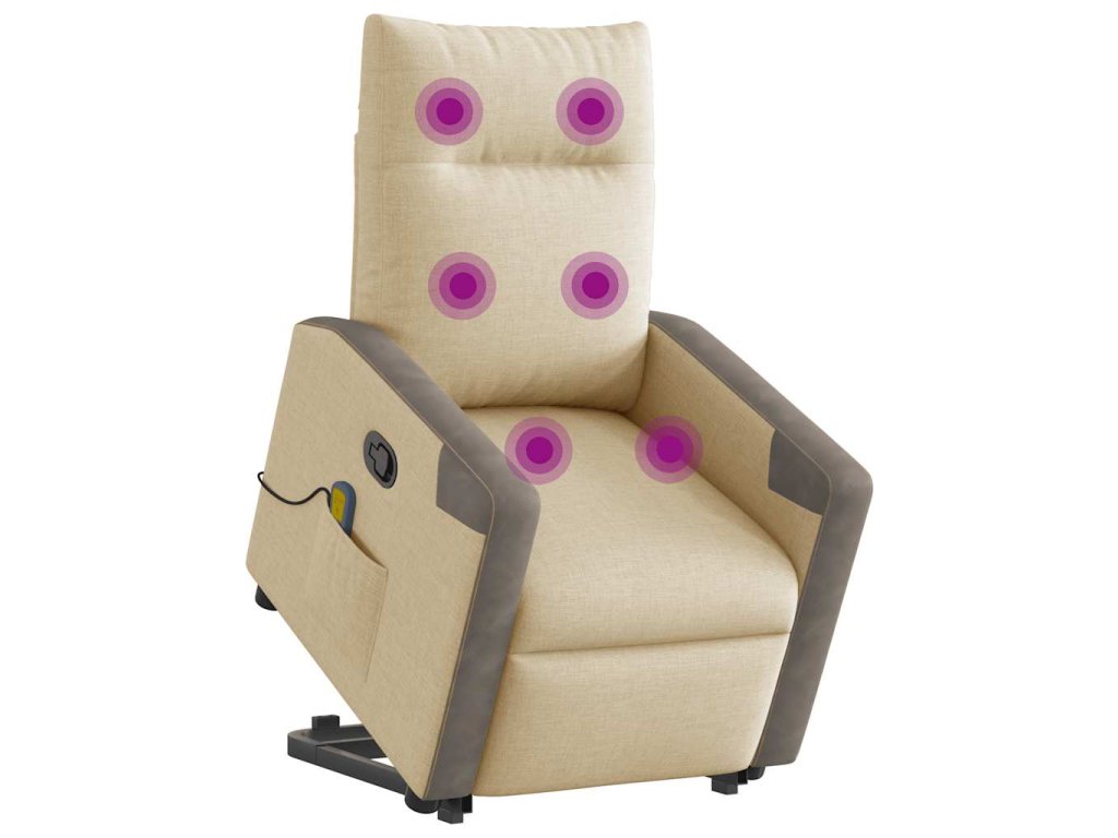 Zvedací masážní polohovací křeslo krémové textil 3324098
