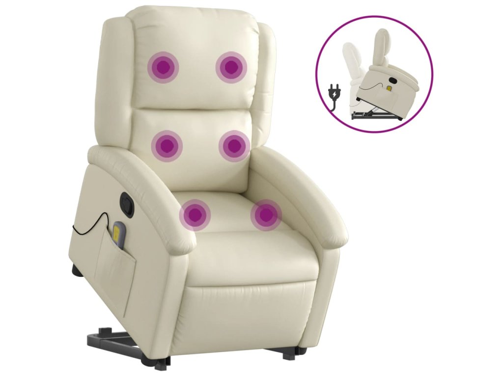 Zvedací masážní polohovací křeslo krémové umělá kůže 3204234