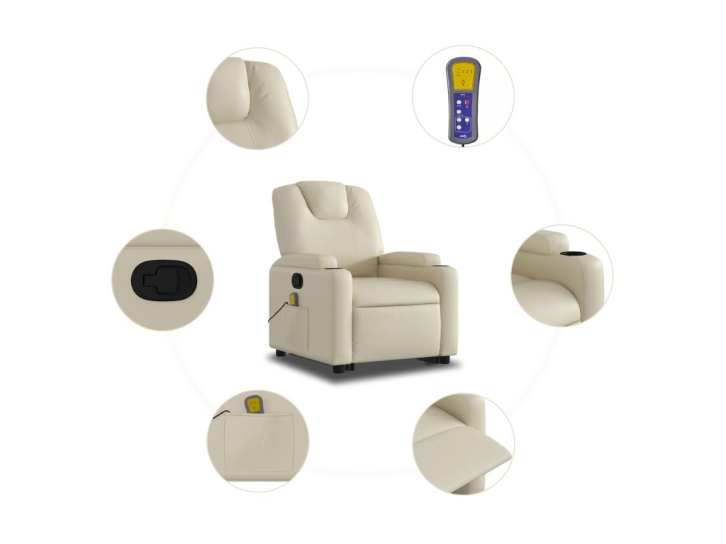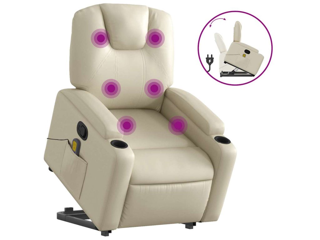 Zvedací masážní polohovací křeslo krémové umělá kůže 3204438