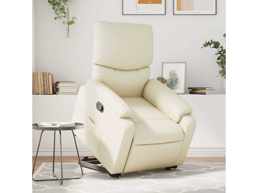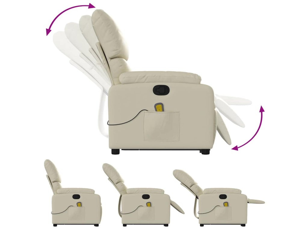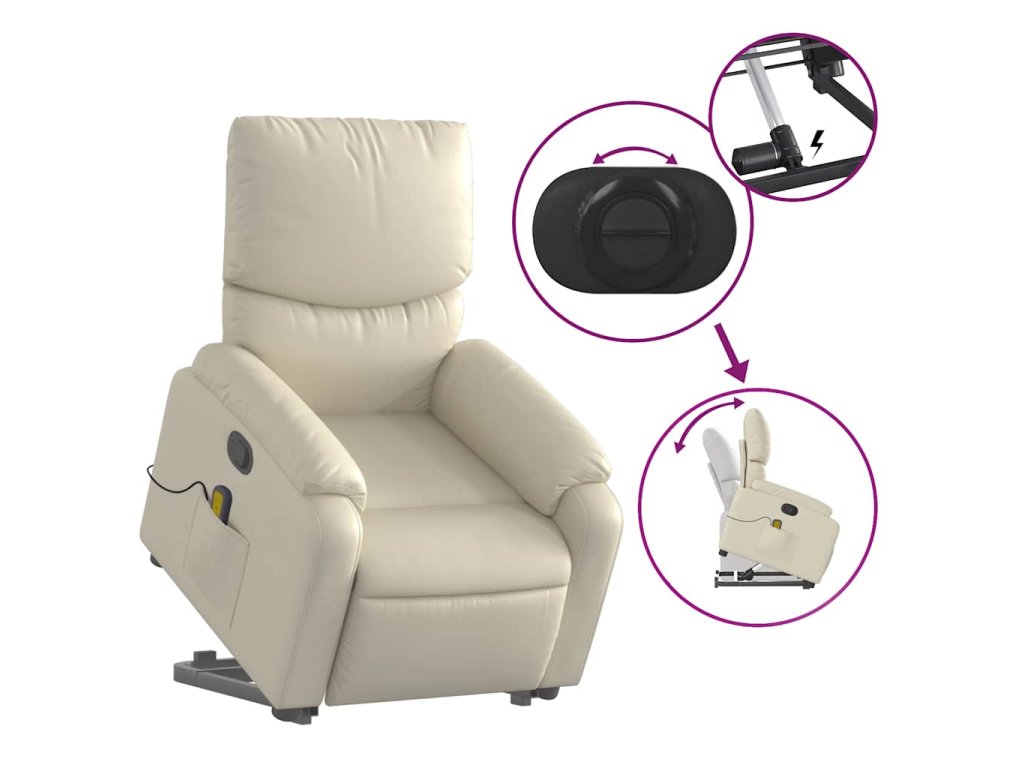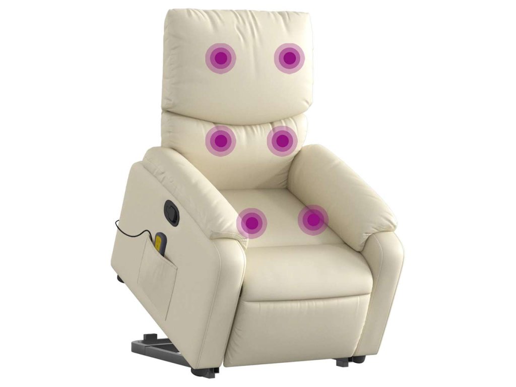 Zvedací masážní polohovací křeslo krémové umělá kůže 3204894