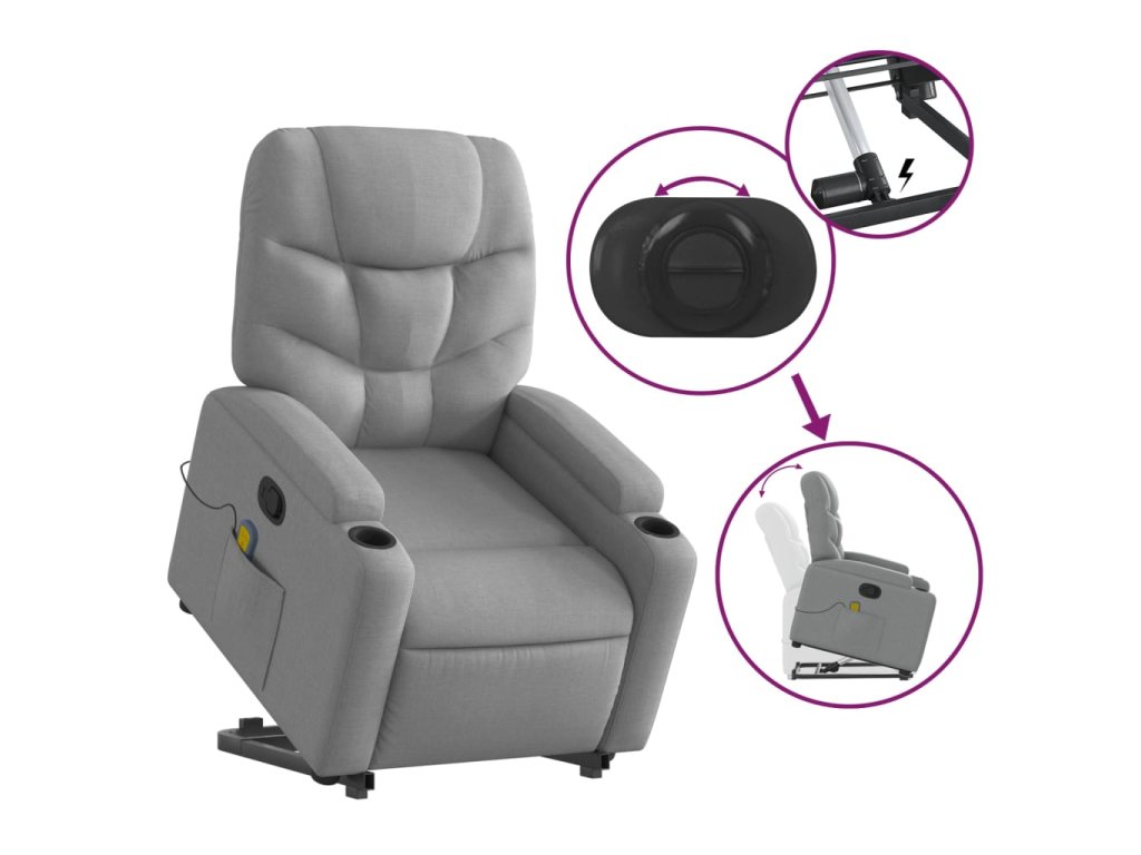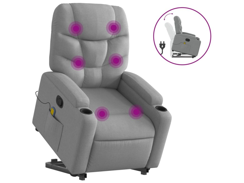 Zvedací masážní polohovací křeslo světle šedé textil 3204608
