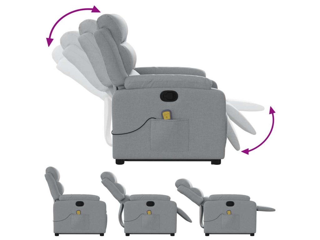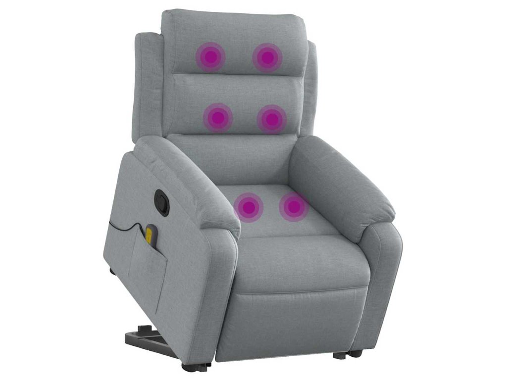 Zvedací masážní polohovací křeslo světle šedé textil 3204992