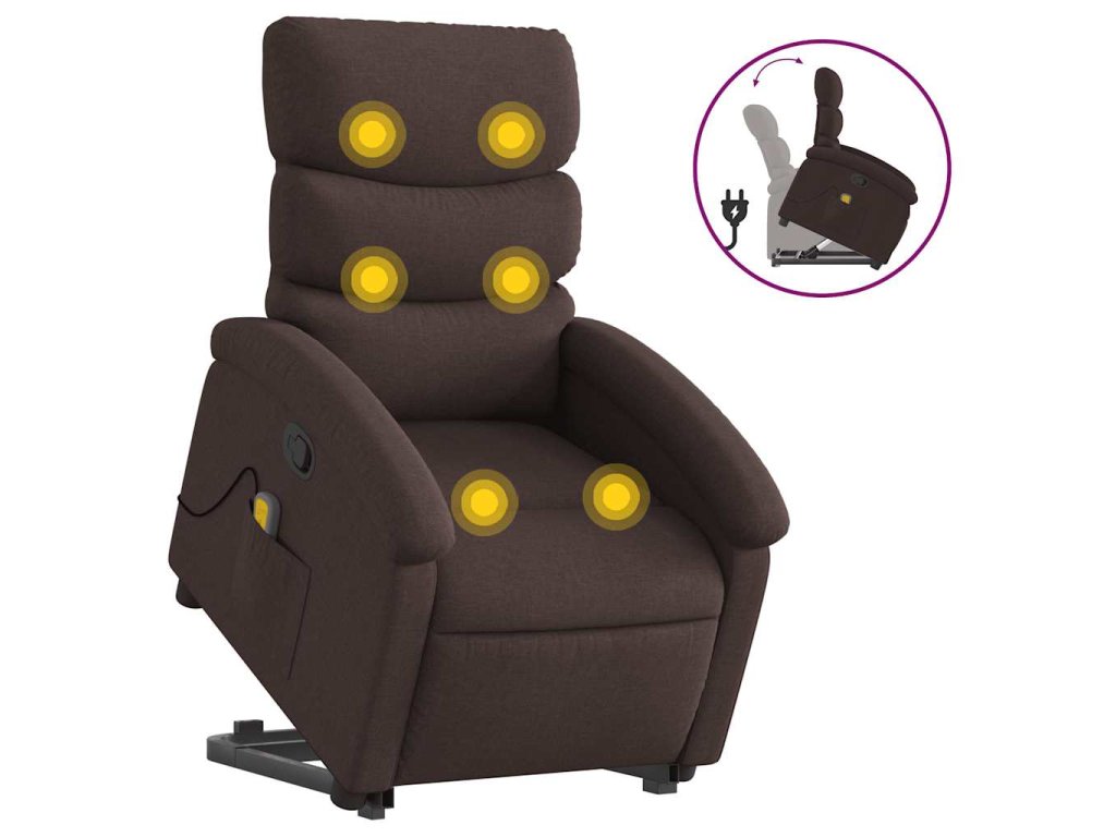 Zvedací masážní polohovací křeslo tmavě hnědé textil 3203995