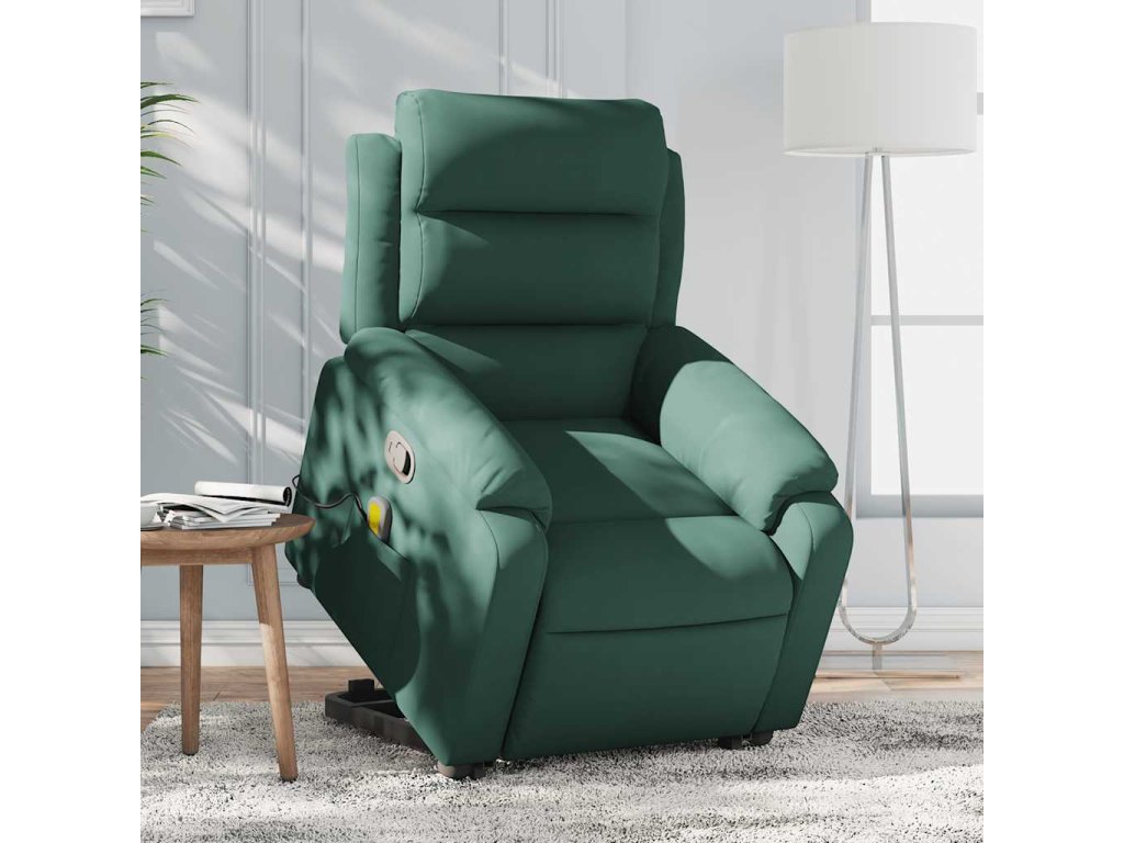 Zvedací masážní polohovací křeslo tmavě zelené samet 3205105