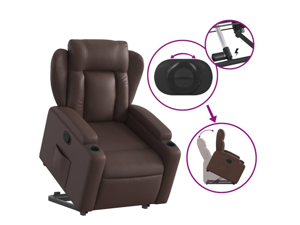 Zvedací polohovací křeslo hnědé umělá kůže 3204546