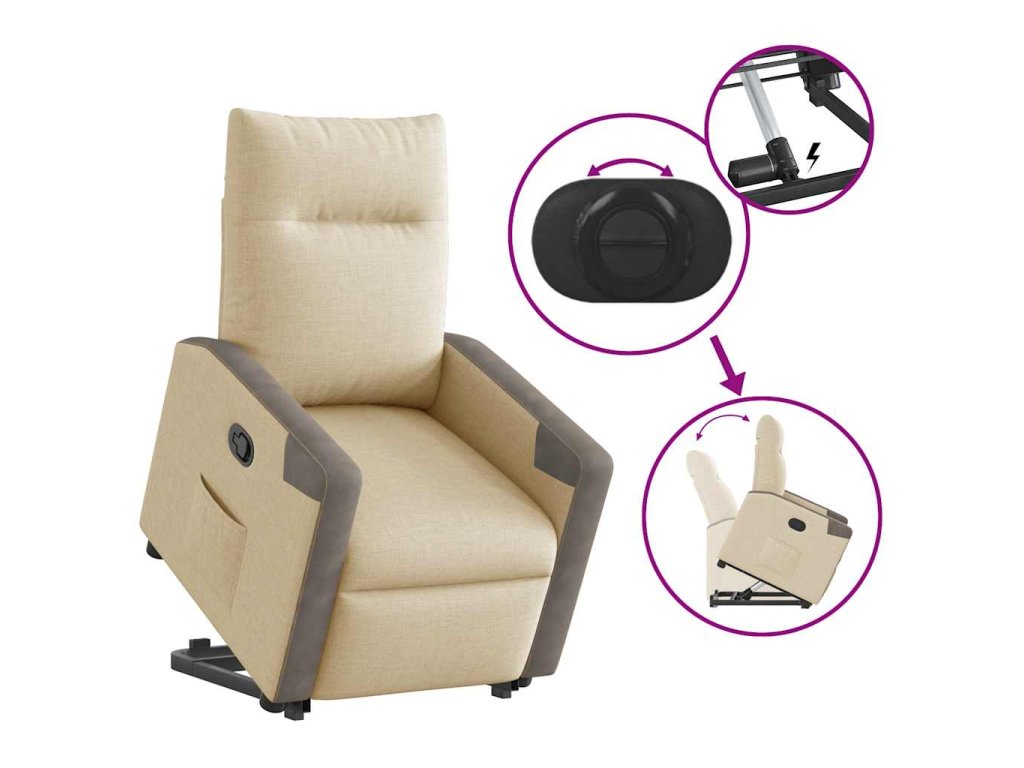 Zvedací polohovací křeslo krémové textil 3324093