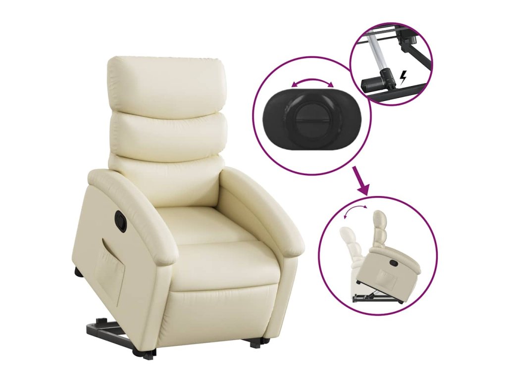 Zvedací polohovací křeslo krémové umělá kůže 3204041