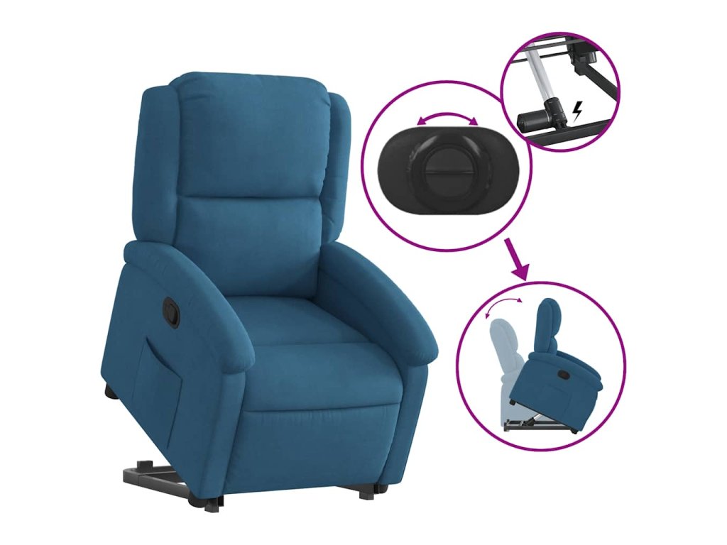 - Funkce sklápění: Toto polohovací křeslo pro seniory je vybaveno elektromotorem pro jeho zvedání. Vzhledem k funkci zvedání, která tlačí celé křeslo nahoru, můžete snadno vstát, aniž byste zatěžovali záda a kolena.