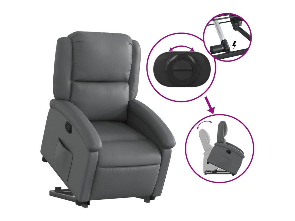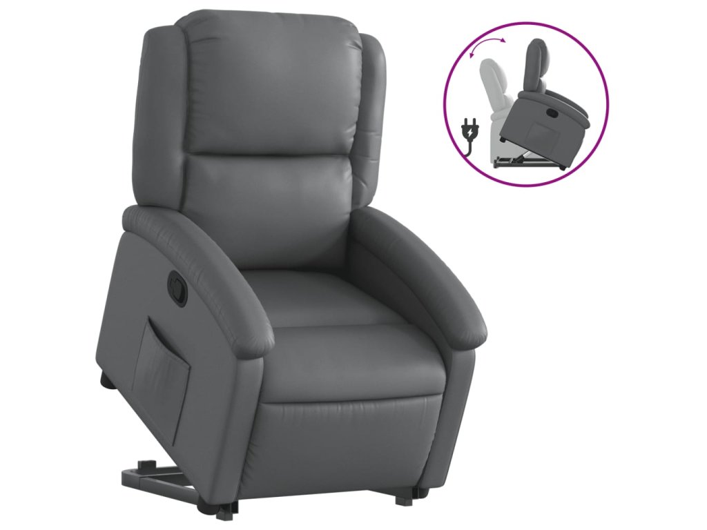 Zvedací polohovací křeslo šedé umělá kůže 3204229