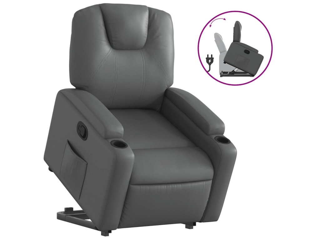 Zvedací polohovací křeslo šedé umělá kůže 3204433