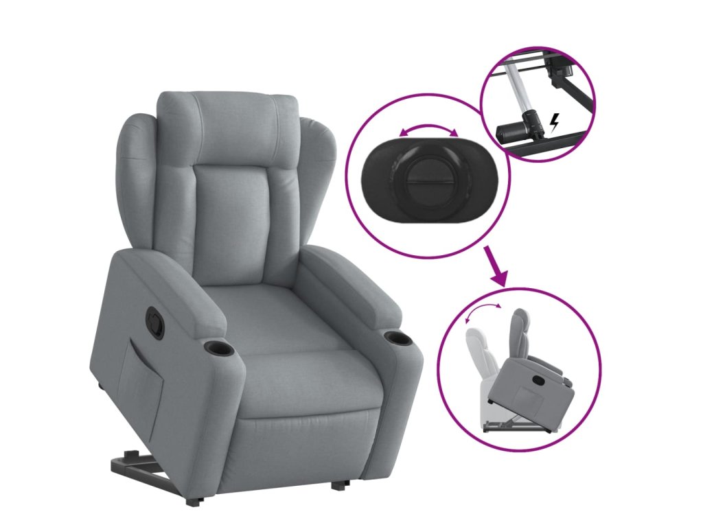Zvedací polohovací křeslo světle šedé textil 3204482