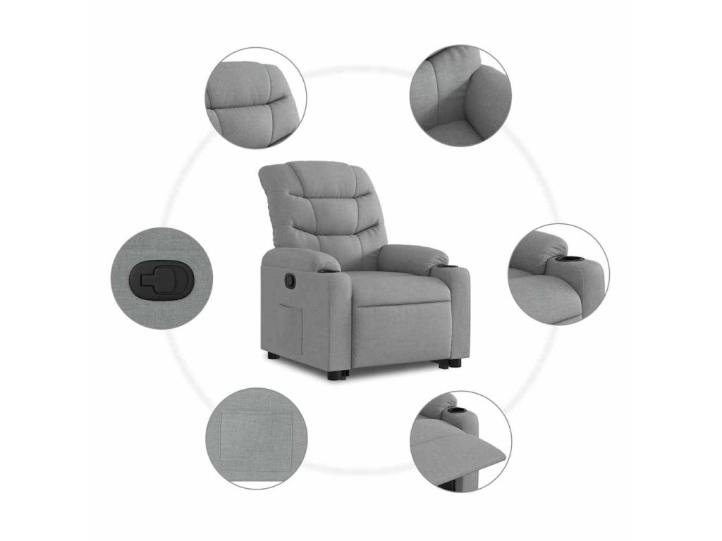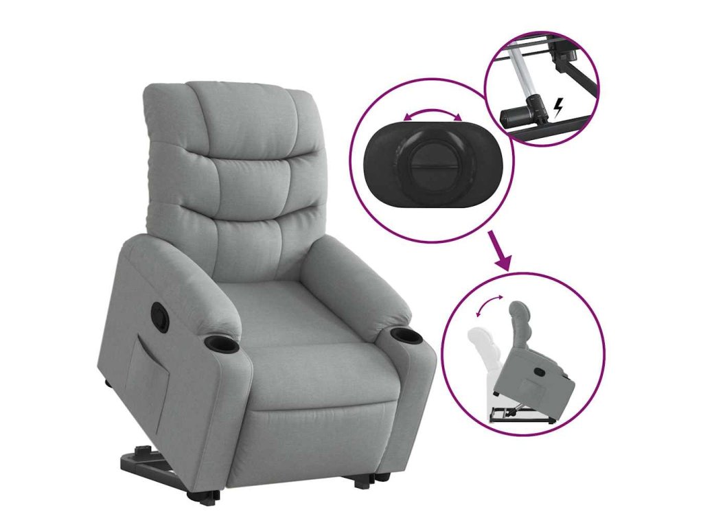 Zvedací polohovací křeslo světle šedé textil 3206645