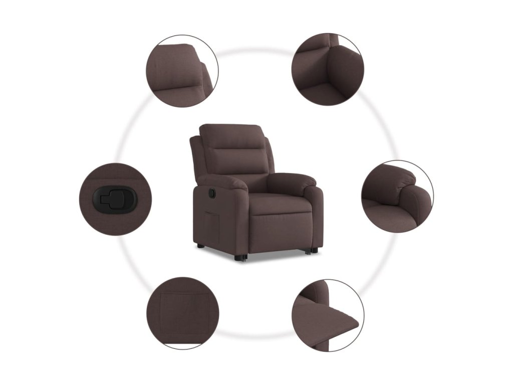 Zvedací polohovací křeslo tmavě hnědé textil 3204985