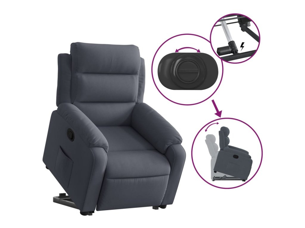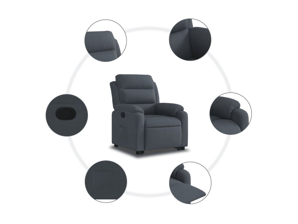 Zvedací polohovací křeslo tmavě šedé samet 3205093