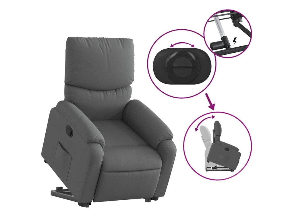 Zvedací polohovací křeslo tmavě šedé textil 3204825