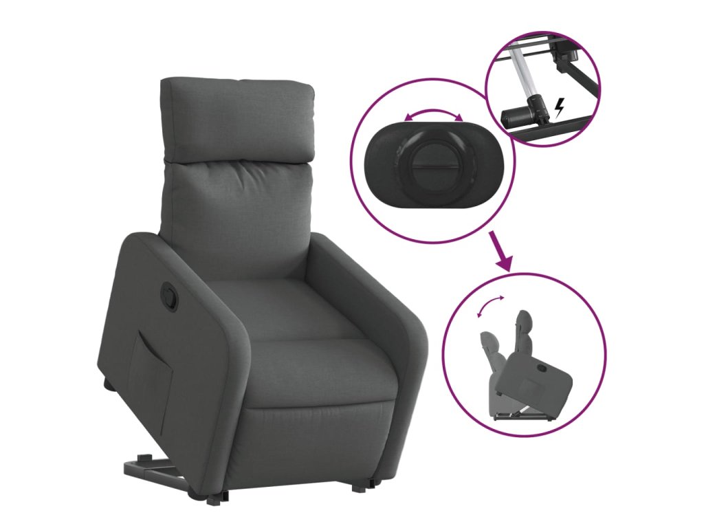 Zvedací polohovací křeslo tmavě šedé textil 3206700